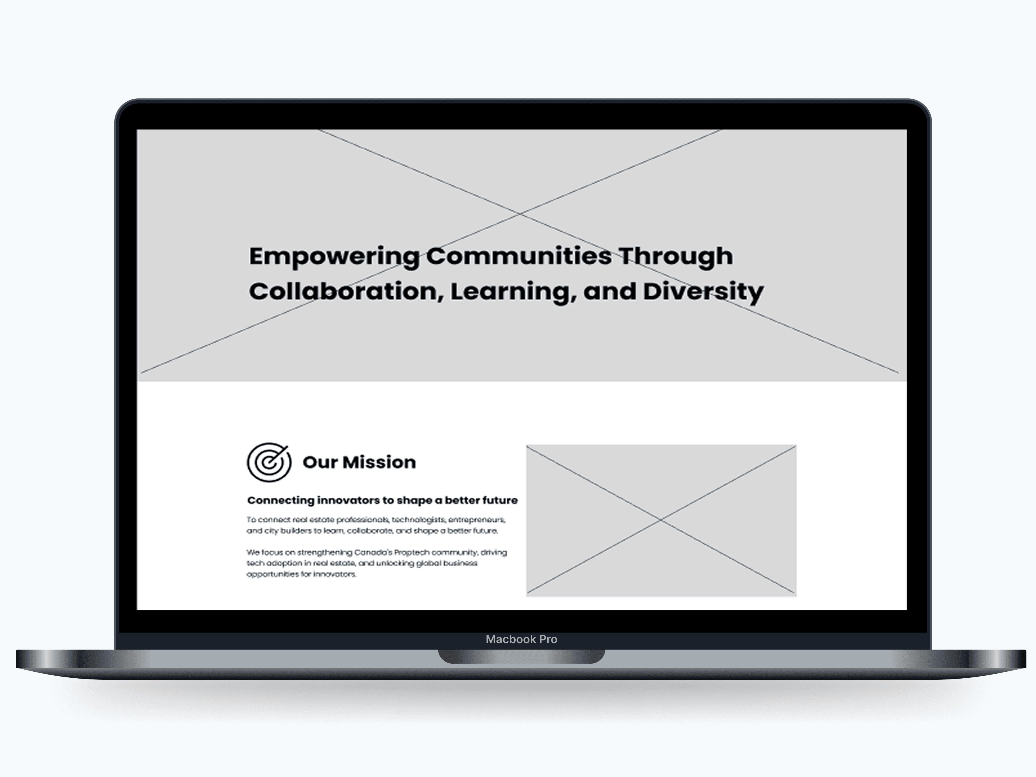We refined the About and Events pages to highlight community impact and set clear user expectations. The Home page became a compelling brand introduction, while the Resources section centralized reports, newsletters, and insights, anchored by a featured call to action for the 2024 Proptech in Canada Report.